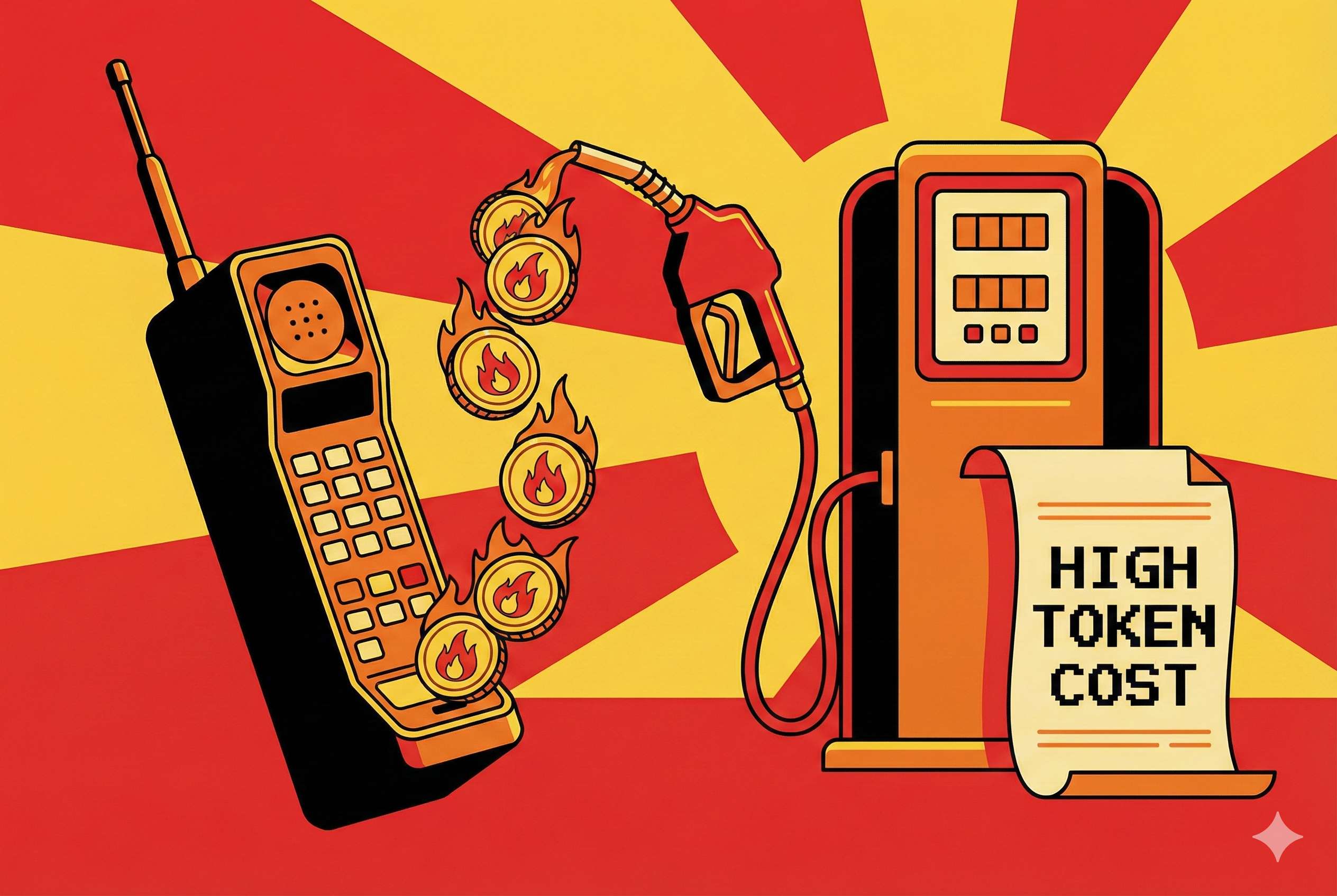 现在的 AI 开发,就像是在 1990 年用“大哥大”打电话。 确实能打通,确实很高科技。但如果你想基于“大哥大”开发一个“视频直播应用”,那你就是在找死。因为通信费会贵到让你破产。
